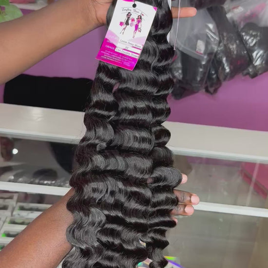 Step into luxury with our Loose DeepWave Bundles, designed to give you bold, defined curls with natural bounce and radiant shine. This texture delivers a full, voluminous look while remaining soft and manageable — perfect for everyday wear or a show-stopping statement.
